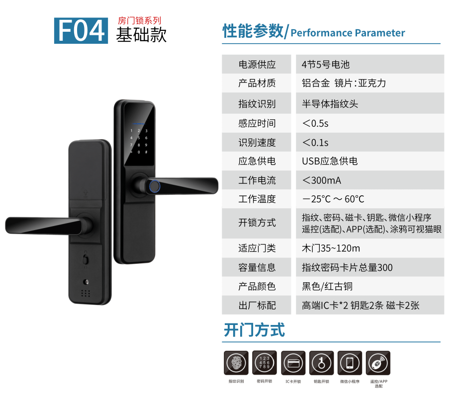 - 防撬报警、虚位密码防窥视、试错报警、低电量报警、AI语音提示、支持多国语言、应急充电